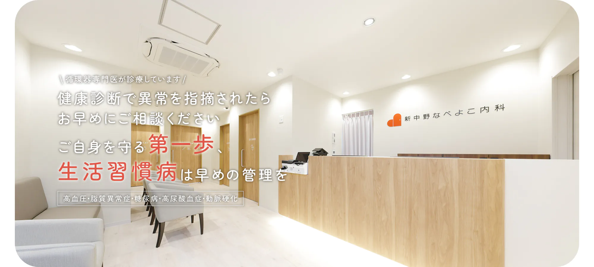 狭心症・心筋梗塞・心不全・動脈硬化などの循環器疾患を中心に、生活習慣病を始めとした内科疾患から睡眠時無呼吸症候群、甲状腺の異常など幅広く診療を行っております。お気軽にご相談ください。